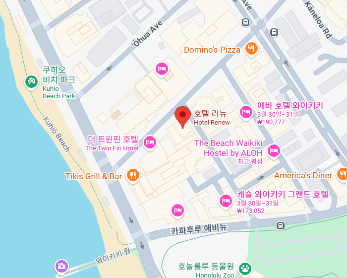 어차피 와이키키 주변의 호텔 어디서나 묵으시든 5분만 나가면
